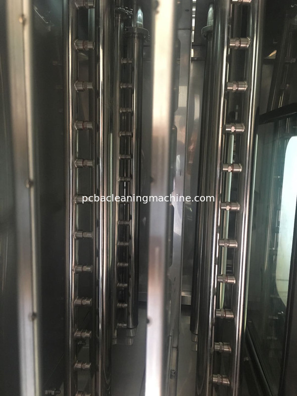 SME-820-Prozess: Flüssigkeitswäsche auf Wasserbasis - DI-Wasserspülung - Heißlufttrocknung. SME-820 hat 4 feste Reinigungssprühstäbe, 4 feste Luftmesser, 2 auf der linken Seite und 2 auf der rechten Seite der Schablone.